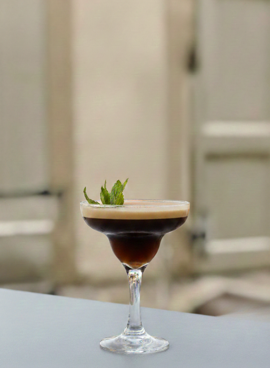 Alle Zutaten auf Eis shaken und ins Glas abseihen. ·
